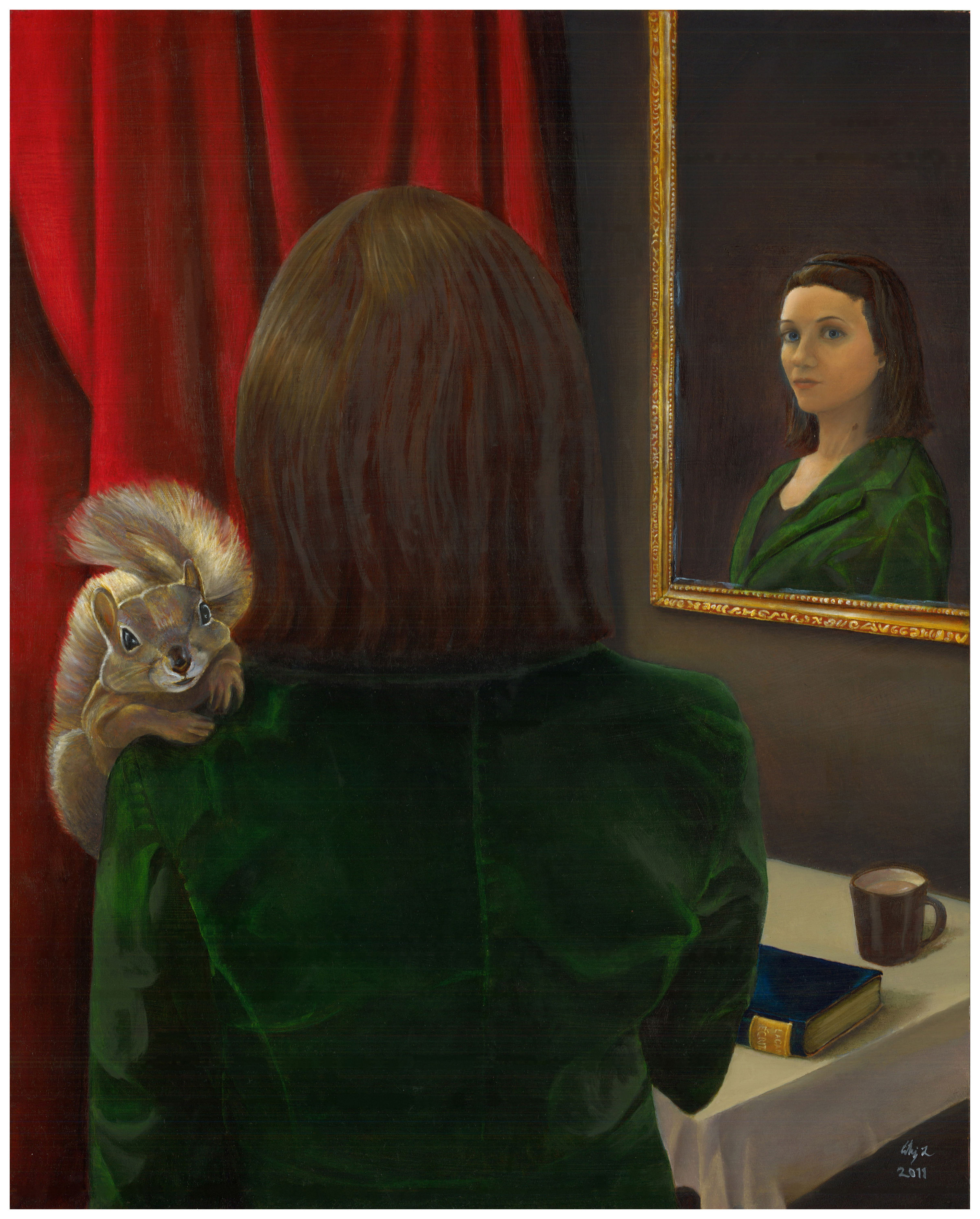 The squirrel (and its lack of reflection) are a mystery to the artist.